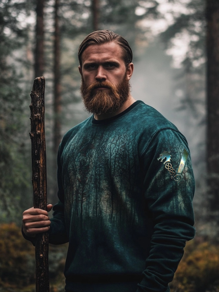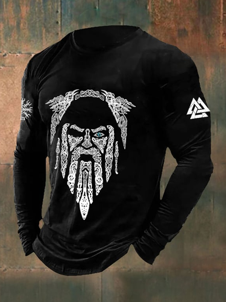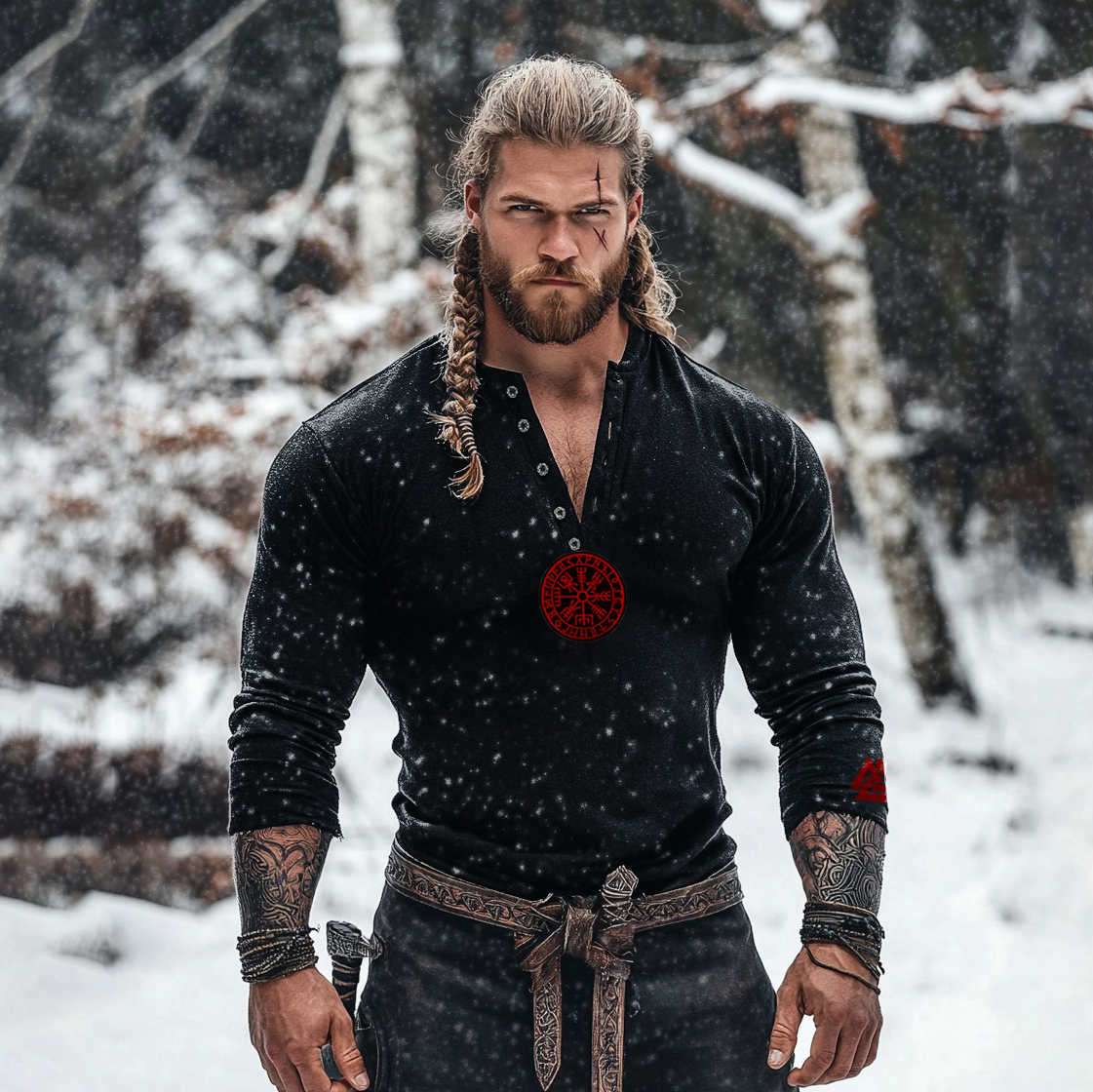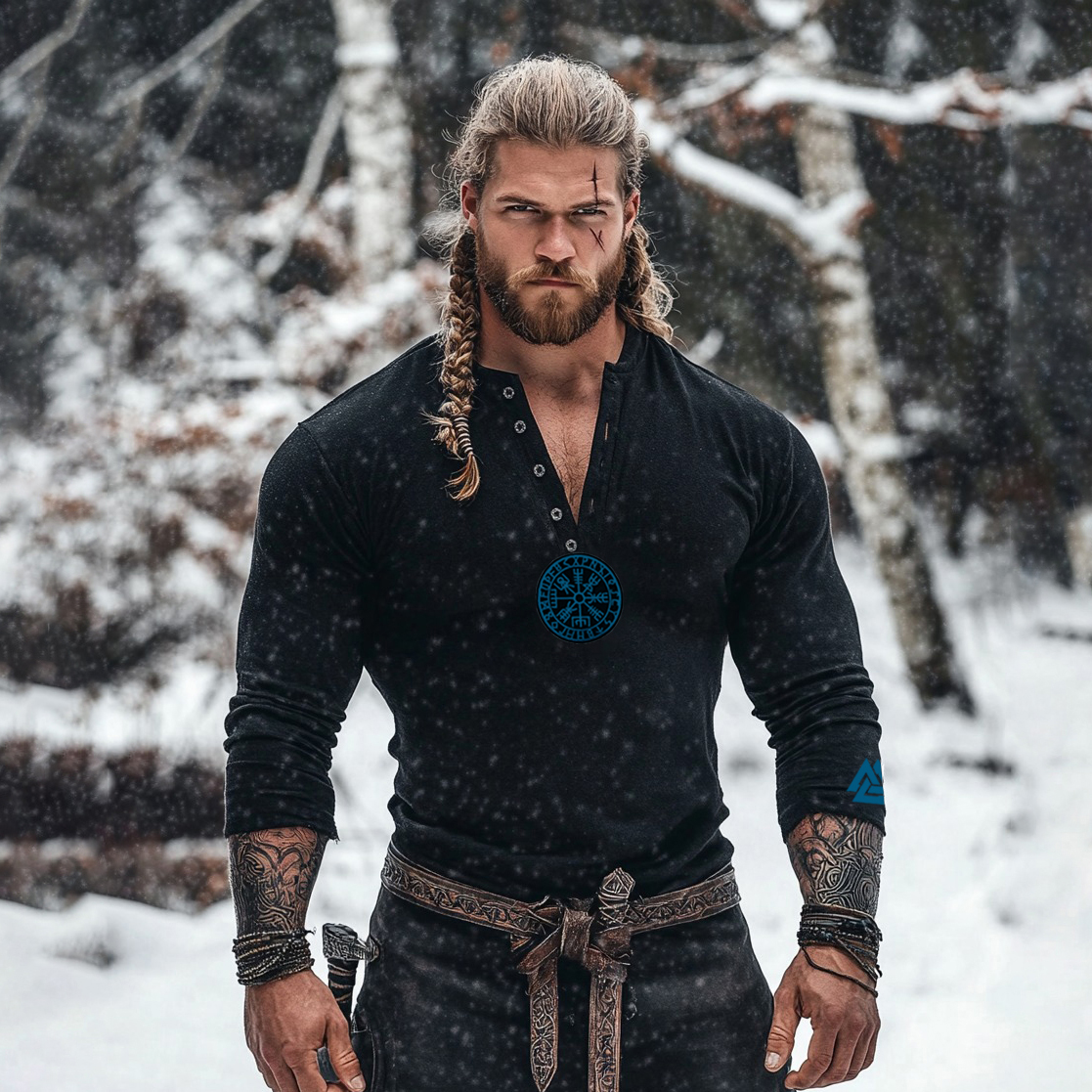 Men's Tribal Viking Runes Graphics Henley Collar Long Sleeves Basic T-shirt