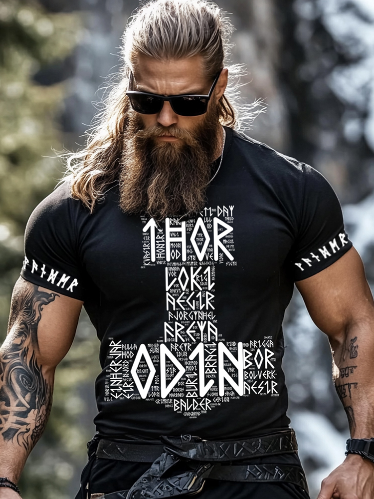 Men's Viking Hammer Rune Print Short Sleeve T-shirt